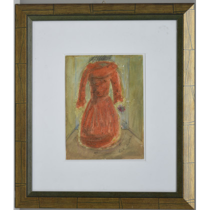 'L'abito III', tecnica mista su carta (cm 23,5x17,5) in cornice. Si allega certificato