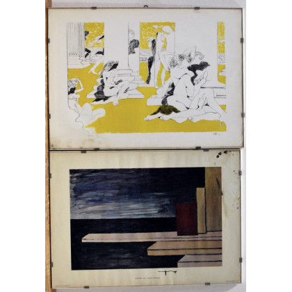 Calabria, Mari. Lotto composto da una litografia e da una riproduzione. In cornice (difetti)
