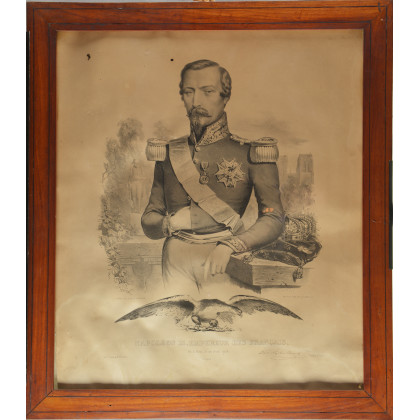 Incisione del sec. XIX raffigurante Napoleone III in un paesaggio in cornici in noce(cm 58x51) (lievi difetti)