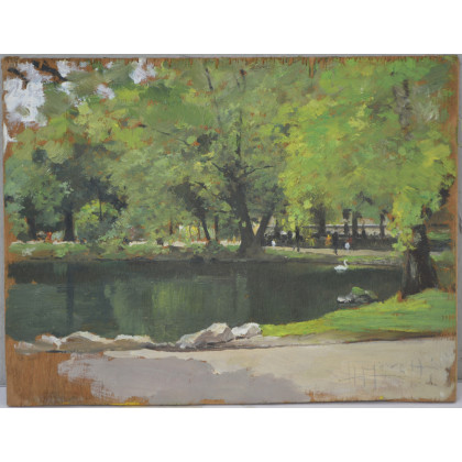 "Il Parco di Monza" olio su tavoletta (cm 19x25) firmato in basso a destra
