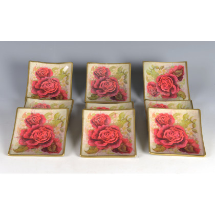 Giulia Maria Michon Pecori Gruppo di dieci piatti in vetro decorati a mano con stampe dall'antico raffiguranti rose (cm 12,5x12,5)