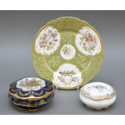 Manifatture diverse. Lotto composto da un piatto di Sevres, da una scatola di Limonges e da un'altra scatola (lievi difetti)