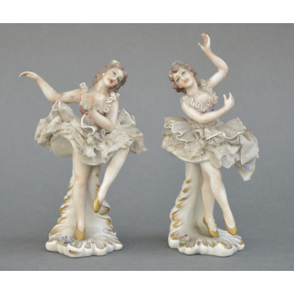 Manifattura italiana, due sculture in porcellana raffiguranti ballerine (difetti e mancanze)