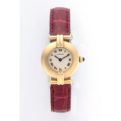 CARTIER Orologio da polso da donna in oro 18K Anni 1989 ca. Quadrante, movimento e cassa firmati Movimento al quarzo Quadrante bianco con cifre romane Cassa n.801095-2827 Diam. mm 24mm Con astuccio e garanzia CARTIER lady's 18K gold wristwatch, 1989 circa Quartz movement, white dial with Roman numerals. Dial, movement and case signed. With the original bag and warranty