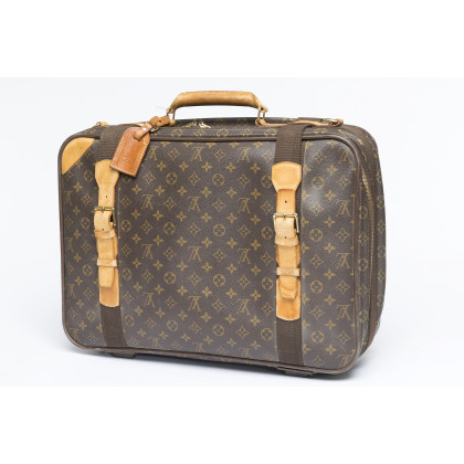 Louis Vuitton Paris: piccola valigia in tela Monogram, rifiniture in vacchetta e tasca esterna, largh. cm 52 (difetti)
