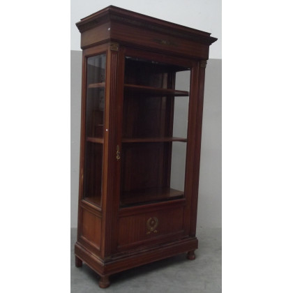 Armadio vetrina in stile impero, decorato con montanti intagliati a colonne corinzie e finiture in metallo dorato (cm 113x205x55) (difetti e mancanze)