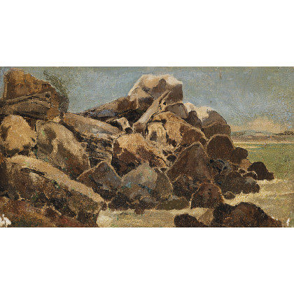 Ignoto "Scogliera" olio su tela applicata a cartoncino (cm 12.5x22.5) In cornice (Difetti)