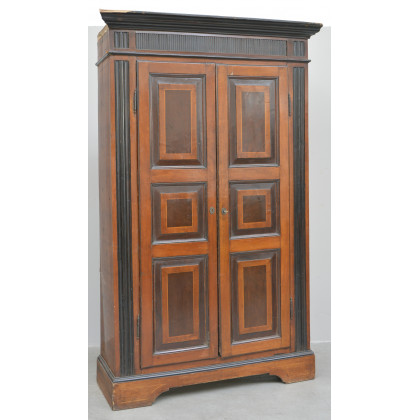 Armadio lastronato in noce, XIX secolo, fronte a due ante a riquadri e filettature (cm 123x194x45) Sec. XIX (difetti)