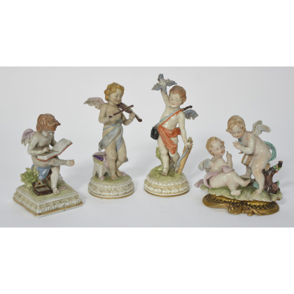 Manifattura italiana, lotto composto da quattro statuette in porcellana raffiguranti putti (lievi difetti)
