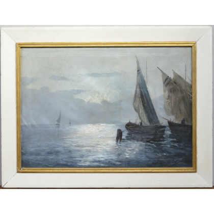 Firma indecifrata "Marina al chiaro di luna" olio su tela (cm 50x70) firmato in basso a destra. In cornice