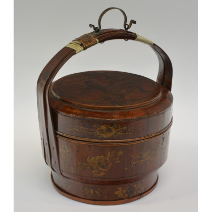 *Cestino da viaggio in legno laccato rosso di foggia orientale (difetti)