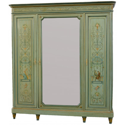 Armadio in legno laccato e decorato a volute e motivi floreali (lievi difetti)