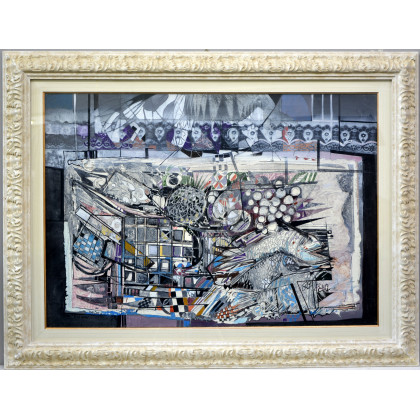 "Natura morta" 1989, olio su tela (cm 70x100) firmato in basso a sinistra. In cornice