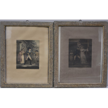 Coppia di litografie inglesi a colori "Scene di genere" In cornici (Difetti)