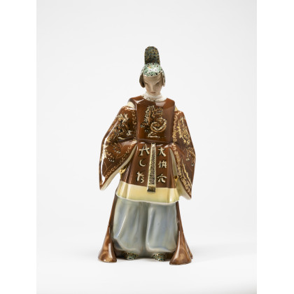 Manifattura Le Bertetti - "Imperatore", ceramica modellata a colaggio in policromia sotto vetrina. marcata "Le Bertetti, Torino made in Italy "Imperatore" n° 770 (h cm 53) (difetti)