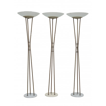 Lotto di tre lampade a tripode con struttura in ottone e base in marmo. Italia, produzione recente (h cm 183) (difetti)