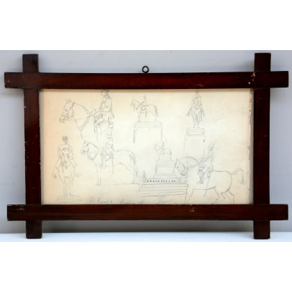 "Bozzetto per la statua equestre di re Fuad I d'Egitto", 1936, matita su carta (cm 28x50), firmato e datato in basso. In cornice (lievi difetti)
