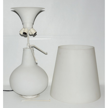 Lampada da tavolo modello "1853/1". Produzione Fontana Arte, Milano, 1954. Alluminio laccato bianco e vetro soffiato lattimo satinato (h cm 78) (difetti)
