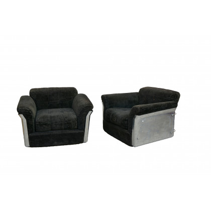 Coppia di poltrone imbottite con struttura in plastica cromata e rivestimento in ciniglia nero. Produzione Saporiti, Italia anni 70 (cm 95x62x83) (difetti)