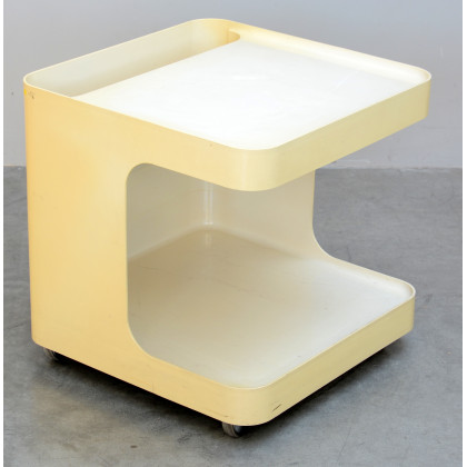 Mobile a rotelle modello "Game". Produzione Longato, pPadova. Anni ’70. Plastica bianca (cm 48x50x50) (difetti)
