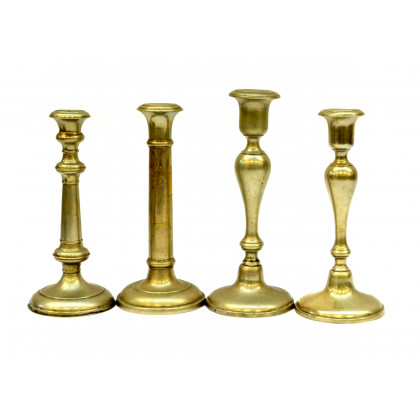 Lotto composto da quattro candelieri diversi in metallo argentato (lievi difetti)
