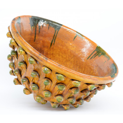Portafiori in maiolica di colore ocra decorato a racemi (d cm 58) (difetti, mancante della base)