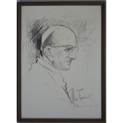 'Ritratto di papa Paolo VI', matita nera su cartoncino (cm 89x49) firmato e datato. In cornice