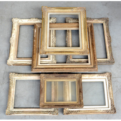Lotto di sette cornici in legno intagliato e laccato degli anni '50 (misure diverse) (difetti)