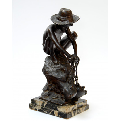 "Pescatorello" scultura in bronzo poggiante su base in marmo (h cm 36.5) Firmata sulla base
