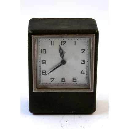 JUNGHANS Orologio salvadanaio in metallo promosso da società assicurative o banche, quadrante firmato, movimento a carica giornaliera con sveglia (cm 12x8,5)