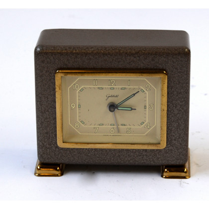 GOLBUHL Orologio salvadanaio in latta promosso da società assicurative o banche, quadrante firmato, movimento a carica giornaliera con sveglia (cm 10,5x11,5)