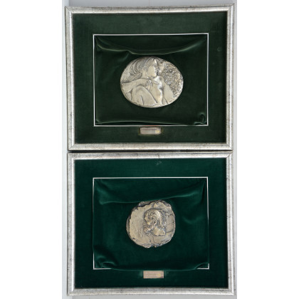 Pietro Annigoni - Emilio Greco Due multipli con cornice in metallo argentato editi dall'Istituto Poligrafico e Zecca dello Stato.