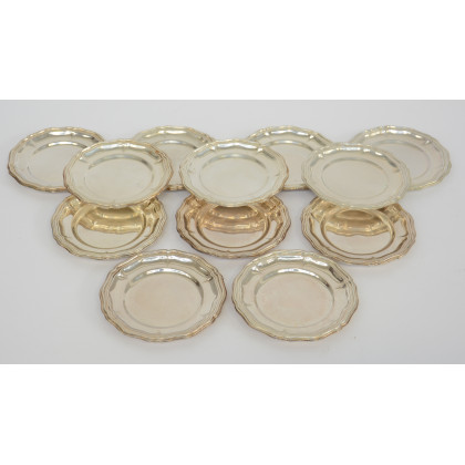 Dodici sottobicchieri in argento a cordo sagomato. Milano, anni '60 (d cm 10) (gr 300 ca.) (lievi difetti)