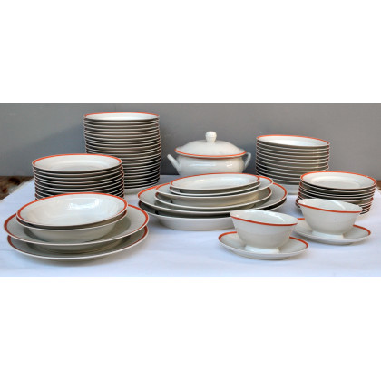 Manifattura tedesca, parte di servizio in porcellana composto da zuppiera centrotavola, trentacinque piatti piani, dodici piatti fondi, due salsiere, dieci piattini, sei vassoi e quattro piatti da portata di misure diverse (difetti)