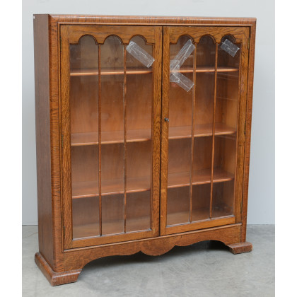 Libreria bassa a vetrina con tre ripiani, grembiule sagomato e piedi a mensola (cm 105x116x30) (difetti)