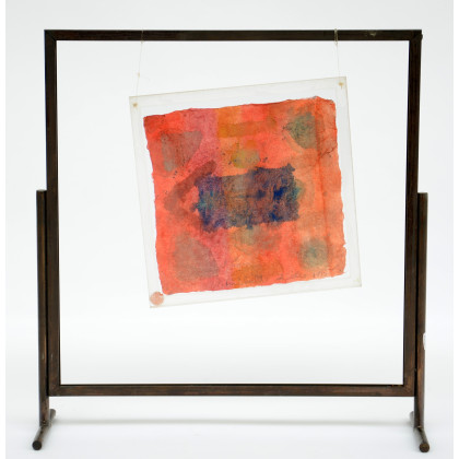 Ignoto "Composizione" tecnica mista su carta montata su plexiglass con struttura in metallo (opera cm 20x20)