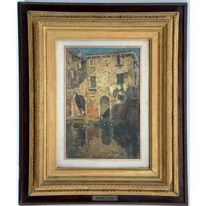 Ignoto "Scorcio di Venezia" olio su cartoncino firmato in basso a sinistra (cm 21x31)In cornice (difetti)