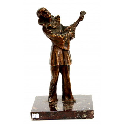 Ignoto, Pierrot . Scultura in bronzo (h cm 24) poggiante su base in marmo (difetti)