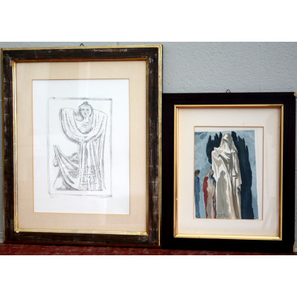 Lotto composto da una serigrafia da Dalì e una riproduzione da Campigli, misure diverse in cornici (difetti)