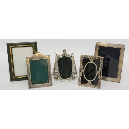 Lotto composto da cinque cornici in argento e materiali diversi (difetti)