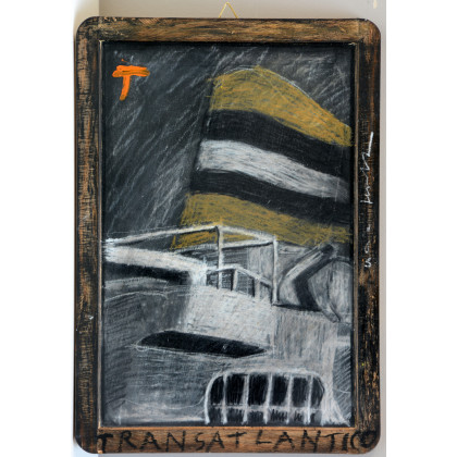 "Transatlantico" 2006, tecnica mista su lavagna (cm 30x20) firmato e datato al verso. In cornice