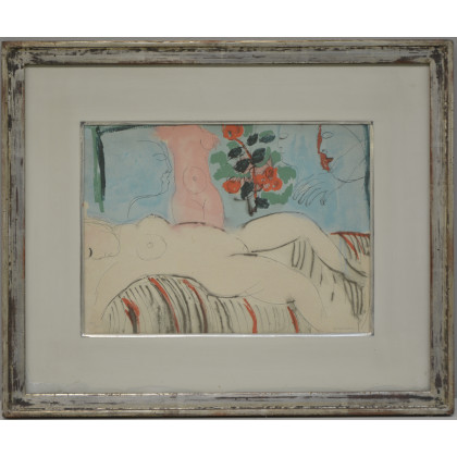 "Figure in un interno" litografia (cm 23x31,5) esemplare 12/150, firmata e numerata in basso. In cornice