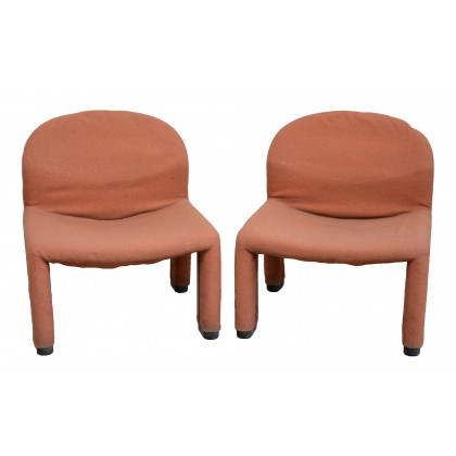 Coppia di poltroncine modello "Alki". Produzione Anonima Castelli, Bologna 1969. Rivestimento in tessuto colon salmone (lievi difetti)