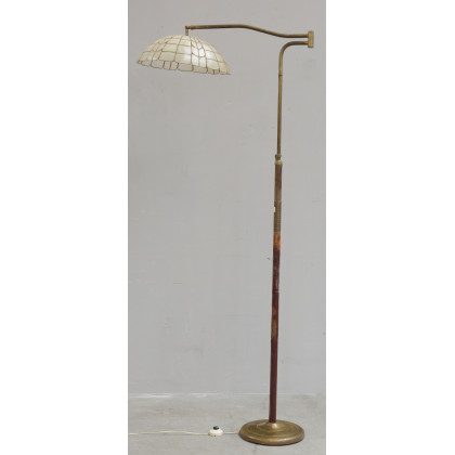Piantana con braccio in ottone rivestita in pelle (h cm 175) (difetti e mancanze)