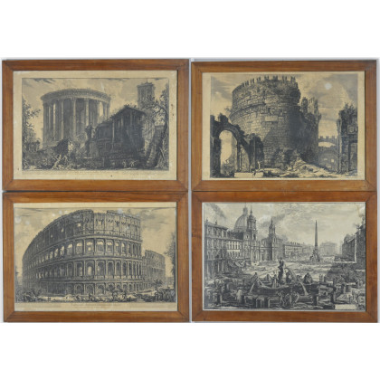 Lotto composto da quattro stampe raffiguranti vedute romane, tiratura tarda (cm 47,5x71). In cornici
