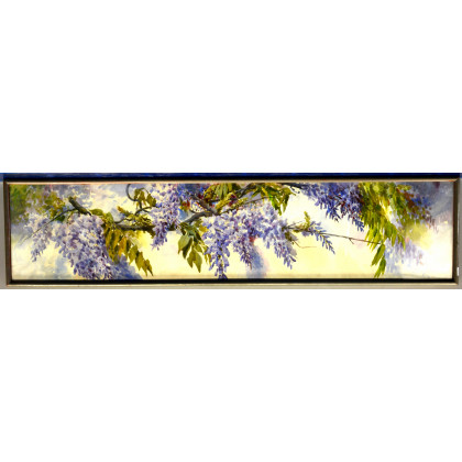 Firma indecifrata "Rami fioriti" 1914 acquarello su carta (cm 26x120). Firmato e datato in alto a destra. In cornice.
