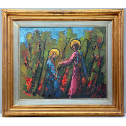 Firma indecifrata "Annunciazione" 1978. Olio su tela (cm 50x60) Firmato e datato al verso. In cornice