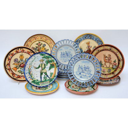 Lotto composto da quattordici piatti di diversa fattura e epoca (difetti)