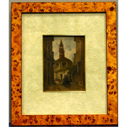 "Via delle ore. Milano" olio su compensato (cm 22x18). Firmato in basso a sinistra. Al retro: titolato.
