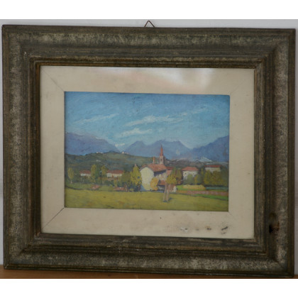 Ignoto "Paesaggio montano" olio su compensato (cm 14x20) in cornice